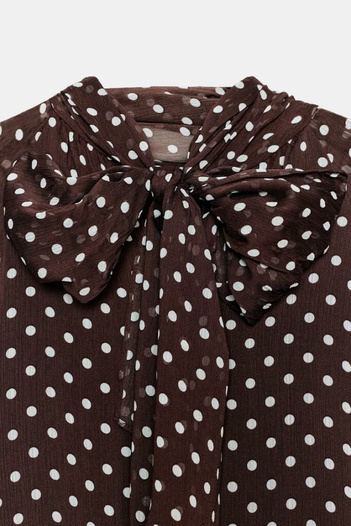 Model doskonale sprawdzi się zarówno w stylizacjach biurowych, jak i codziennych. W zestawieniu z eleganckimi spodniami lub spódnicą stworzy klasyczny, kobiecy look, a w połączeniu z jeansami nabierze bardziej casualowego charakteru. Ponadczasowe groszki i ciepły odcień brązu sprawiają, że to element garderoby, który łatwo dopasować do wielu kolorów i dodatków. To uniwersalna propozycja dla kobiet ceniących styl, wygodę i modę, która nie przemija po jednym sezonie.